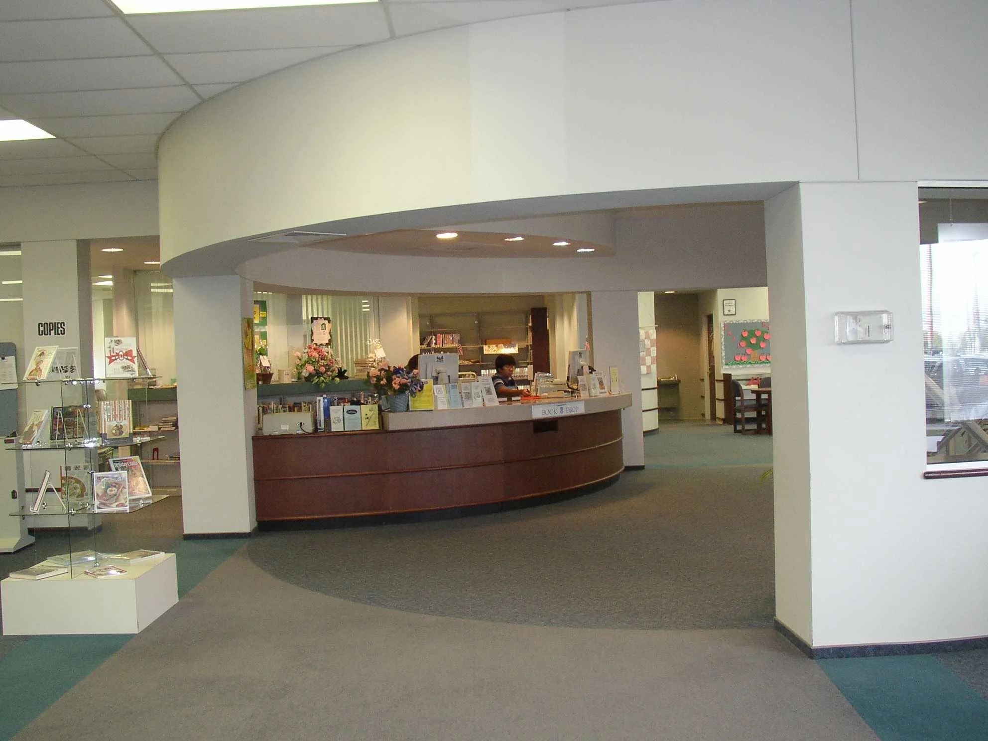 The library’s entry was placed in the center of the space. This position allowed the circulation desk and all staff work areas to be centrally located. Furthermore, this placement allowed the adult and children’s areas of the library to be separated. Because of after hours use, the meeting rooms and city store were separated from the main library areas.